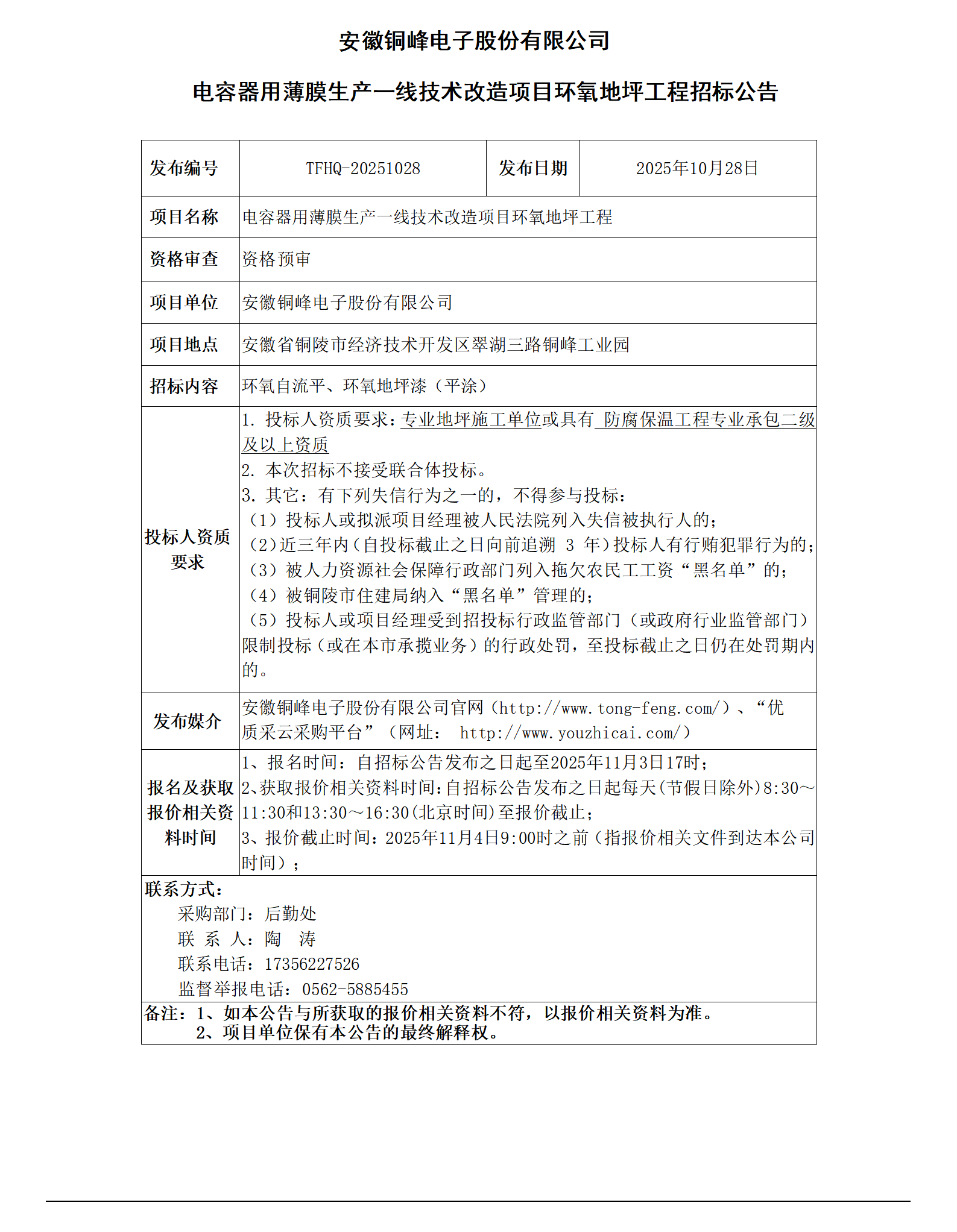 安徽銅峰電子股份有限公司 (電容器用薄膜生產(chǎn)一線技術(shù)改造項目環(huán)氧地坪工程 招標(biāo)公告)_01